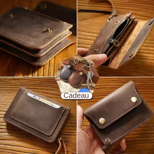 Portefeuille Vintage en Cuir Crazy Horse pour Homme – Véritable Cuir de Vache, Format Court + Étui AirTag Offert