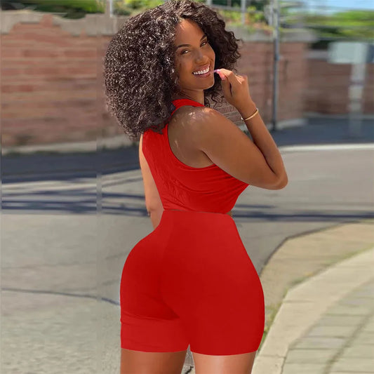 Sleeveless High Waist Tracksuits Women Matching Sets 2 Piece Tight Set Sexy Short Tank Tops And Shorts Summer