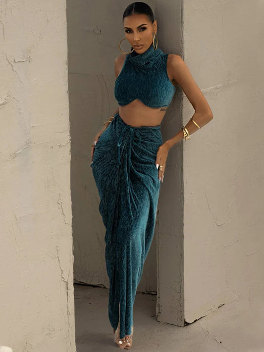 Two-Piece Long Sleeves Sexy Top High Waist Mini Skirts Streetwear Fashion Elegant 2 Piece