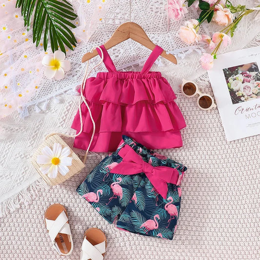 Baby Clothes Set 6Months - 3Years old Sleeveless Croptop and Cartoon Flamingo Shorts