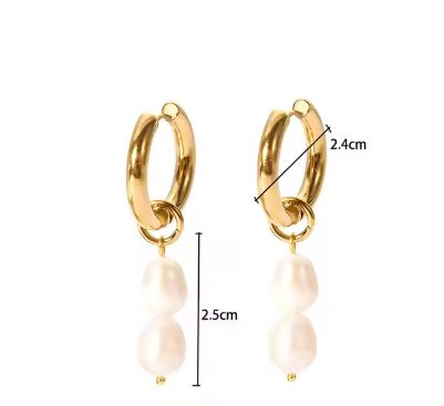 Boucles d'Oreilles Créoles Dorées avec Double Perle Pendante (Copy)