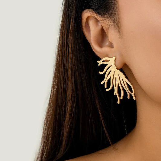 Boucles d'Oreilles Élégantes Ailées Plaquées Or à Motif Géométrique