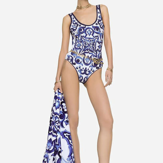 Vintage Bikini Women One Piece Swimsuit Swimwear & Skirt