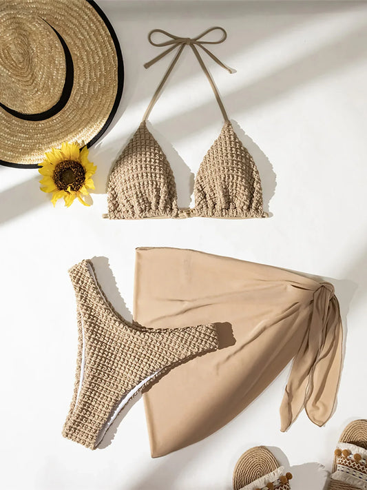 Wrinkled Halter Bikini Three-pieces Bikini set