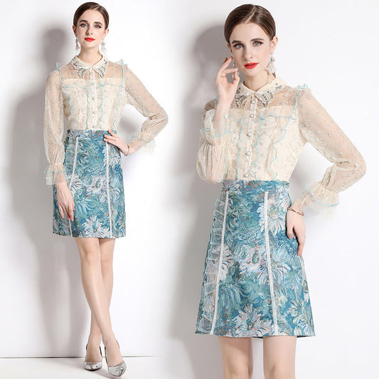 Mesh Gold Thread Embroidery Beads Long Sleeve Slim Fit Pullover Patchwork Heavy Industry Dress